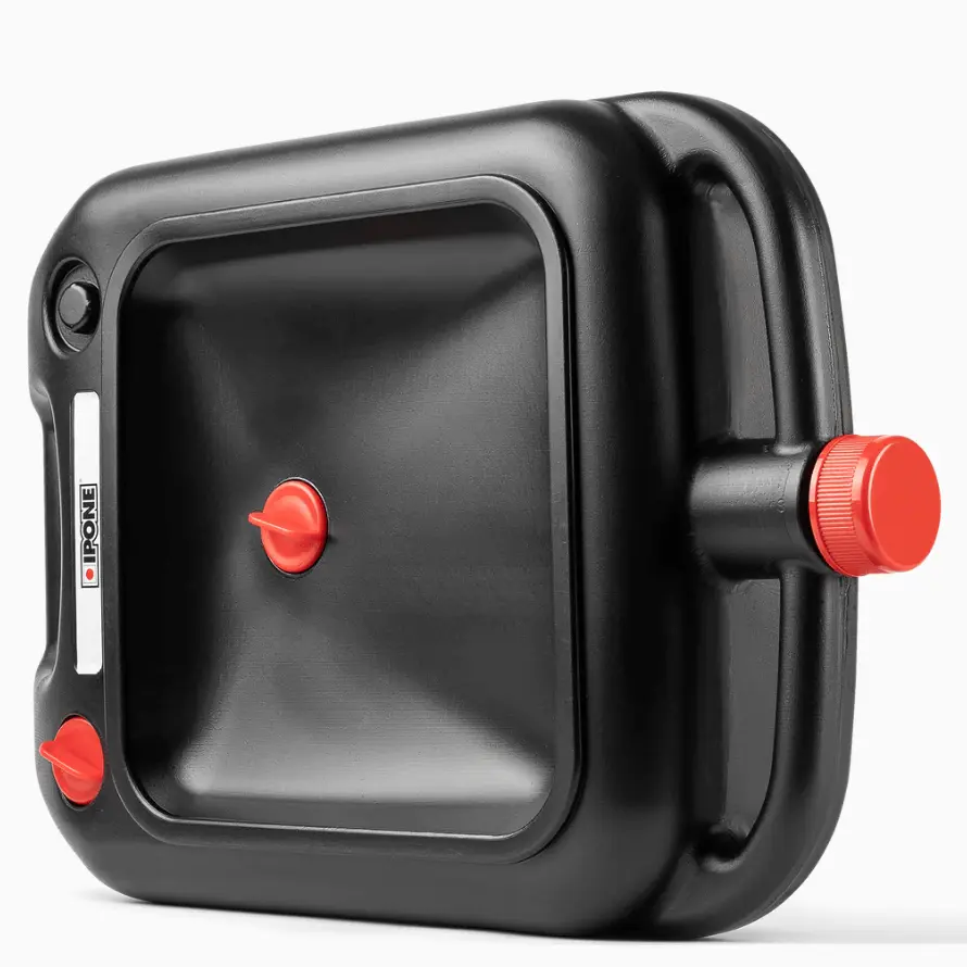 Provisto de un tapón de vaciado y de un tapón de aireación, el aceite usado fluye fácilmente y se transporta de manera limpia. Su material plástico es sólido y duradero, y su capacidad de 4 litros es ideal para efectuar el cambio de aceite de todas las motos del mercado.